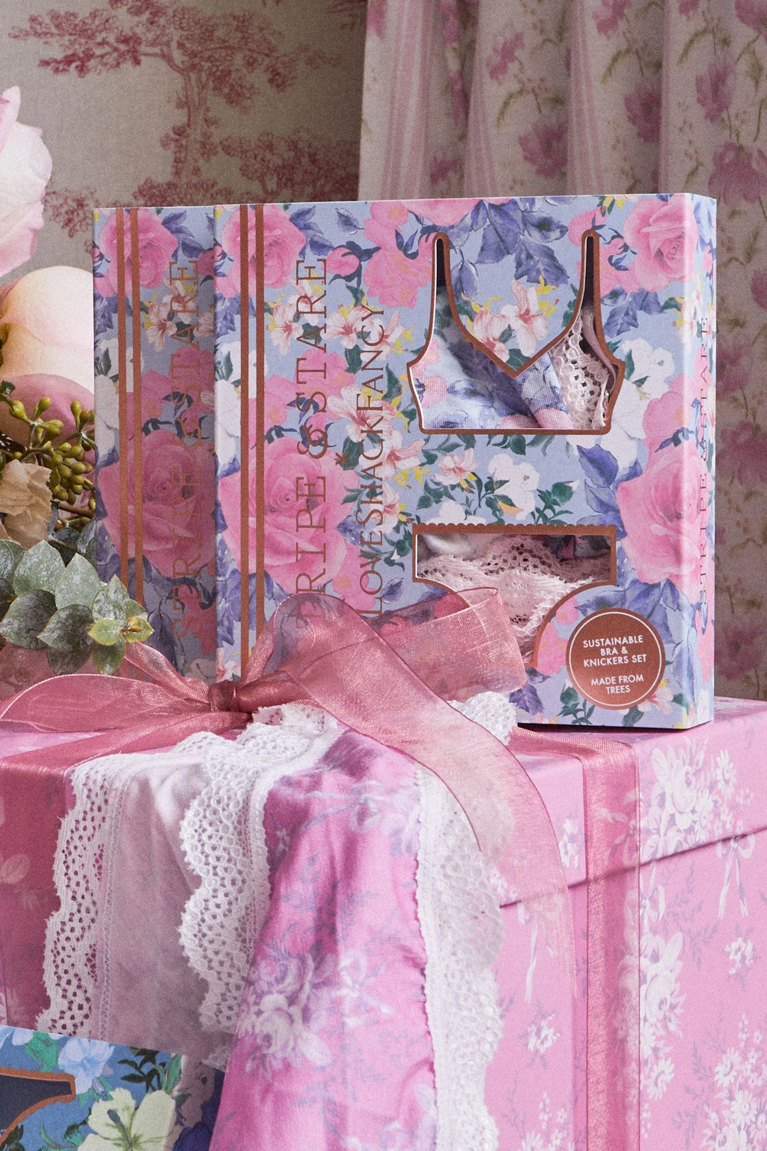 With Stripe & Stare’s signature soft cotton, this Bralette and Underwear set are featured in ourย Primrose Pinkberry print.ย The bralette has no underwiring making it incredibly comfortable.ย Made of Stripe & Stare’s signature sustainable Tencel fabric it will be the softest thing in your wardrobe.ย Plus, theseย undies don’t give visible panty lines. Shown here in Primrose Pinkberry.