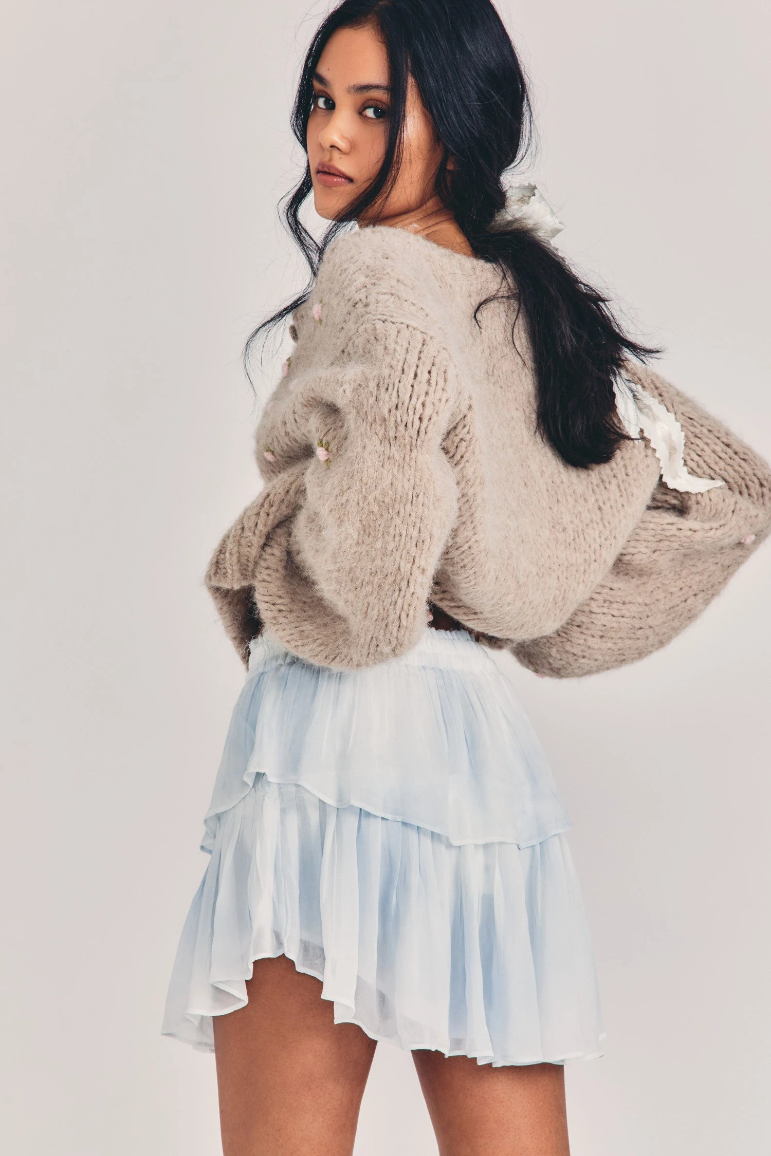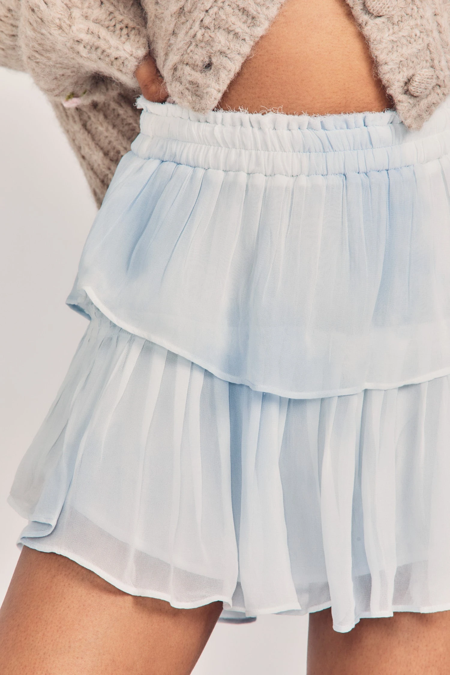 Our signature Ruffle Mini Skirt is back in a sheer hand tie-dye with lining beneath. The two-tiered short skirt, with an elasticated waistband and shirred flounces, dances along with you as you move throughout the world. Wear it with our Branton Cropped Cardigan.